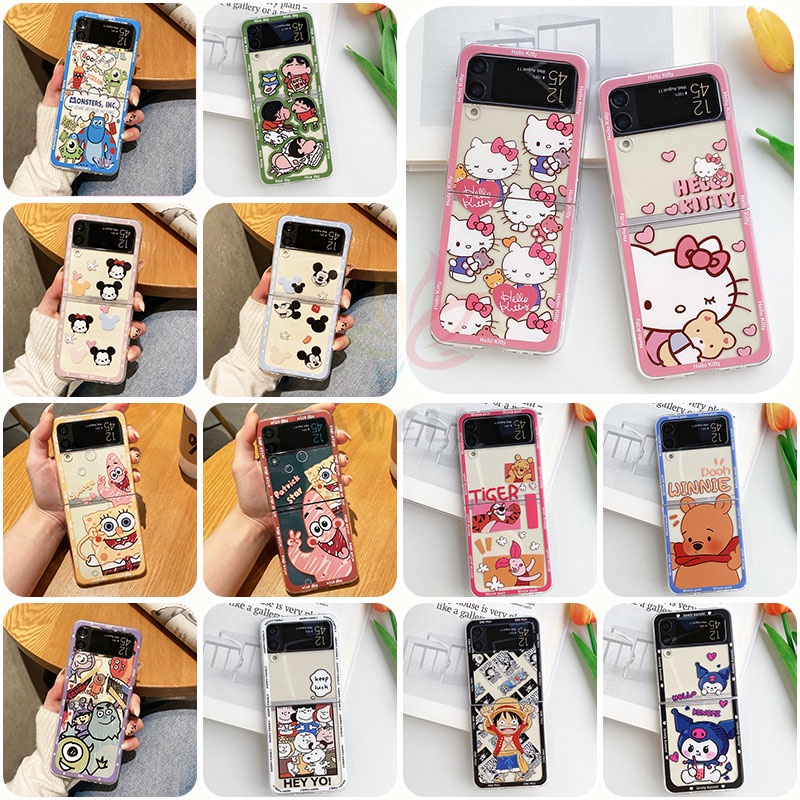 Fofo Desenho Animado Hello Kitty Gato Transparente Capa Samsung Galaxy Z Flip 4 3 Zlip 3 Anti-Impacto Protetor Capinha De Celular
