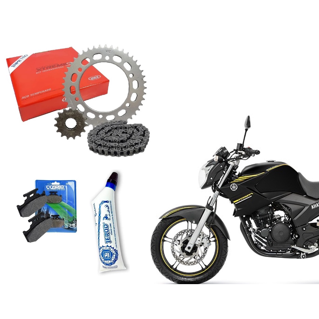 Kit Relação Tração Vaz + Graxa + Pastilha Traseira Cobreq Fazer 250 Ano 2005 Até 2016