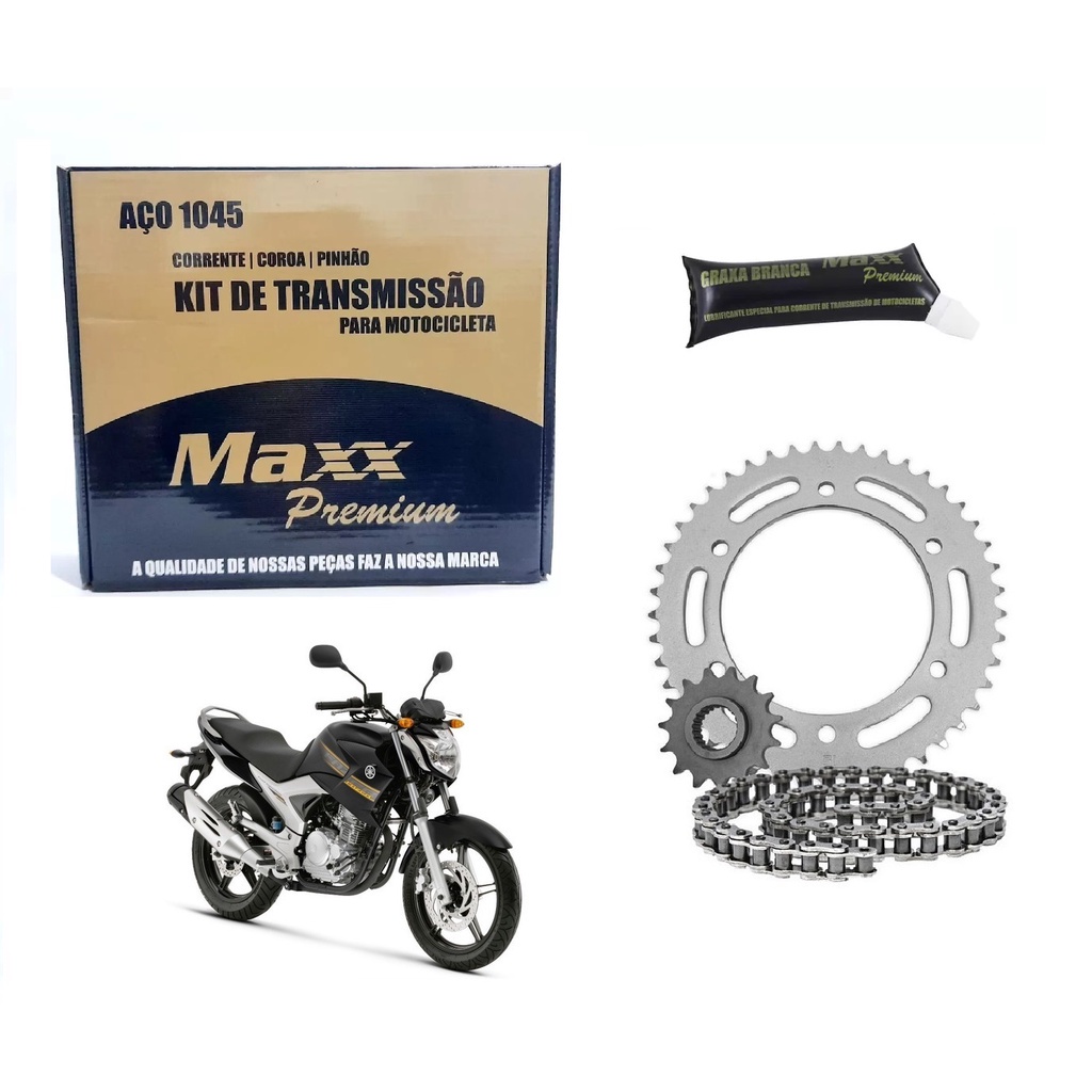 Kit Relação Tração + Lub Graxa Branca Corrente Maxx 1045 Ys Fazer 25 250 2018 Até 2021