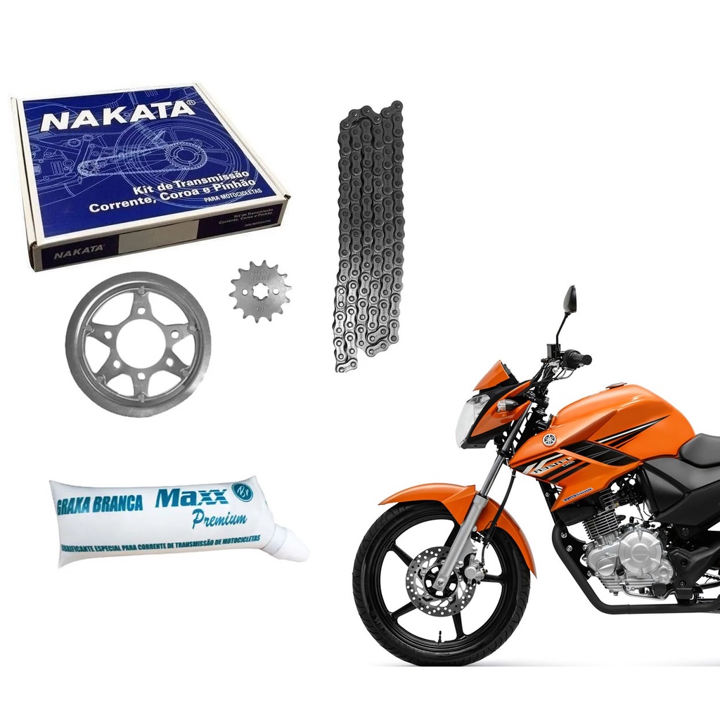 Kit Relação Tração Nakata + Graxa Branca Fazer 150 Ano 2014 Até 2019 Aço 1045
