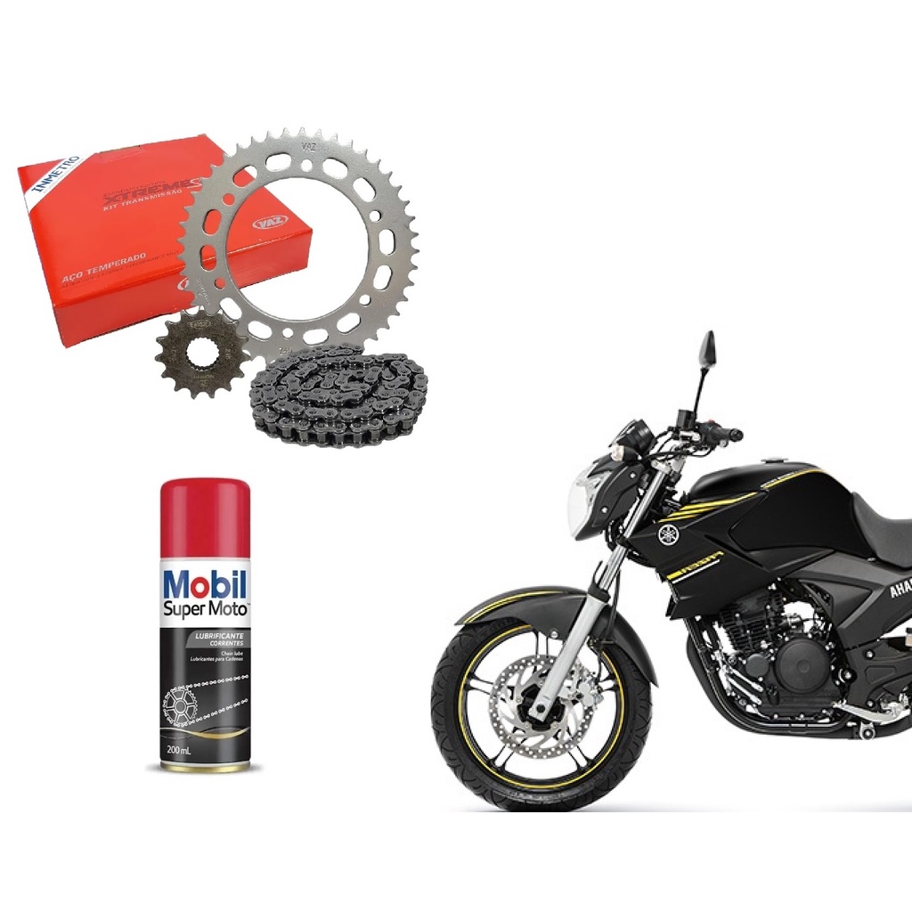 Kit Relação Tração Vaz + Spray Mobil Lub Corrente Fazer 250 Ano 2005 Até 2017