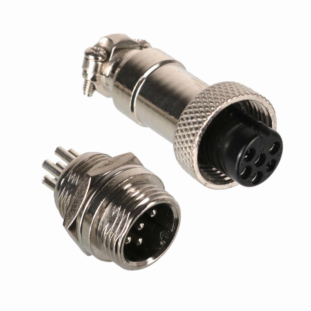 Par conector Aviação Circular mini Mike GX12 painel 6 vias
