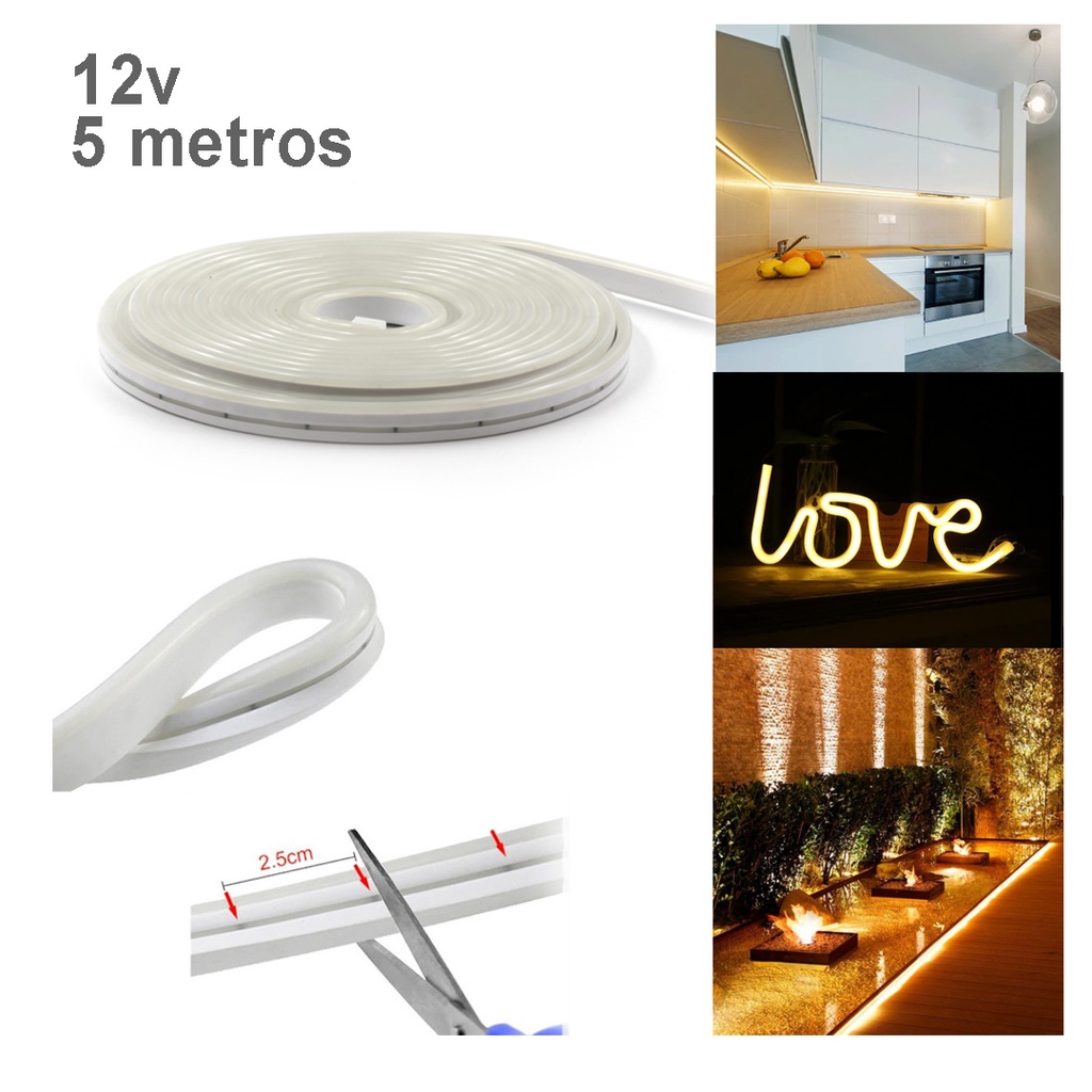 Mangueira Neon 12v - 1 metro - 1m - Painel Neon - Corte 2,5cm 6 x12mm Vitrine - Decoração Decorativa Diversas cores para painel de neon painel led desenho neon