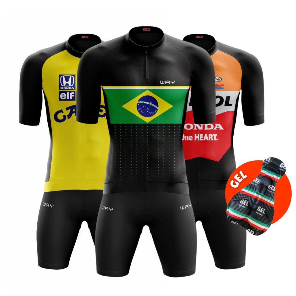 Conjuntos de Ciclismo Roupa Masculino Camisas Pro e Bermuda Short Gel
