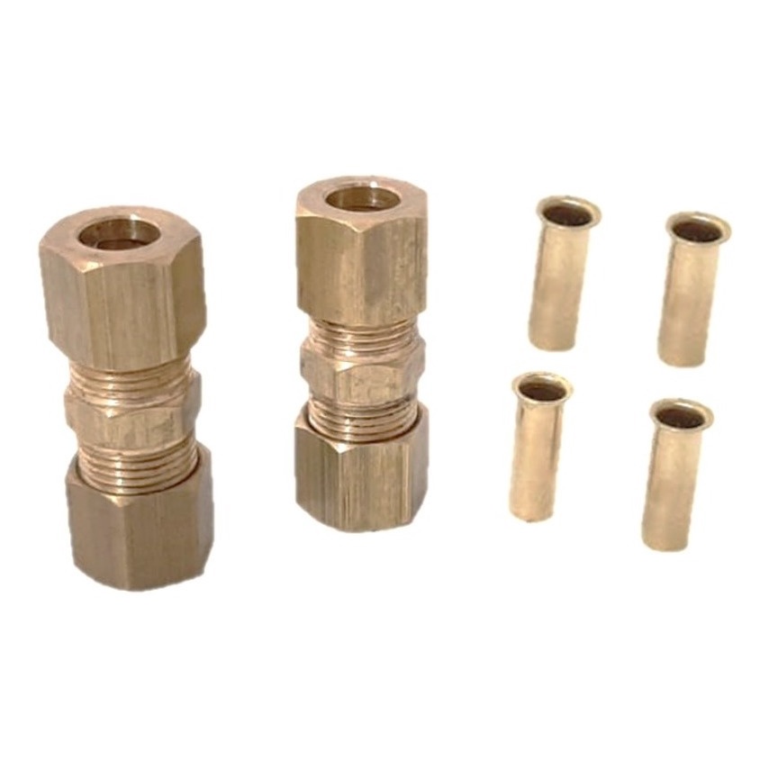 Kit 2 União Emenda P/ Tubo De Cobre 1/4'' Inserto Anilha