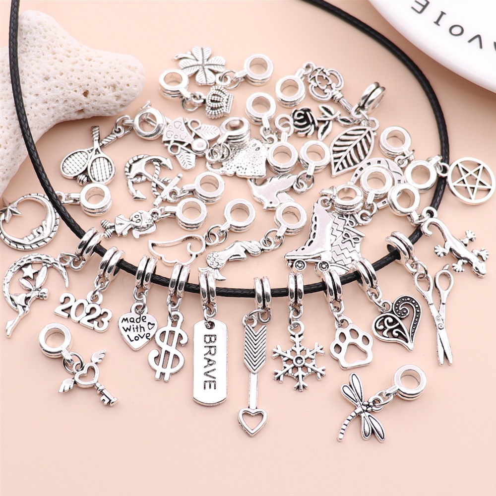 Mix 30 Pçs/set Sonho Corajoso Charme Dangle Para Mulheres Colar Pingente De Prata Acessórios Pulseira DIY Fazer Jóias