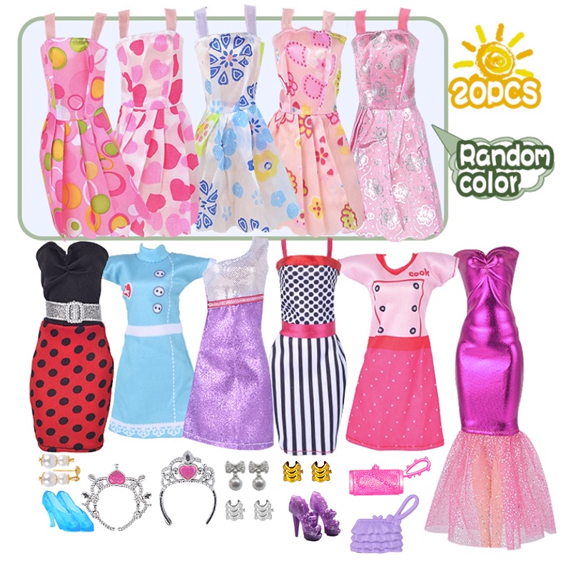 Conjunto BJD Boneca 20 Pcs + Roupas De Boneca doll Set barbie acessórios Moda Roupa Diária Vestido De Festa Série Uniforme 30 Centímetros Roupa Da Boneca