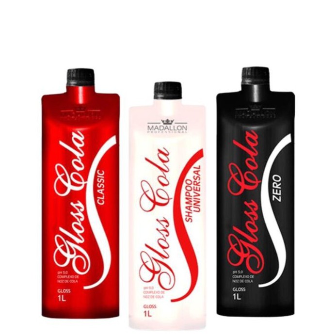 Combo Gloss Cola Progressiva Sem Formol e Progressiva Com Formol Cabelo Liso (Shampoo+ Gloss cola zero + Gloss cola classic) 1L Madallon