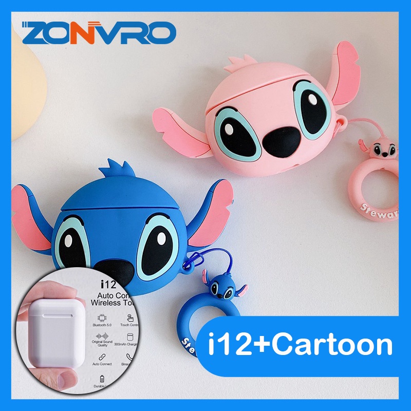 2023 Novo i12 Tws Fone De Ouvido Bluetooth 5.0 Sem Fio + Capa Protetora 3D Cartoon Cute Stitch Lover