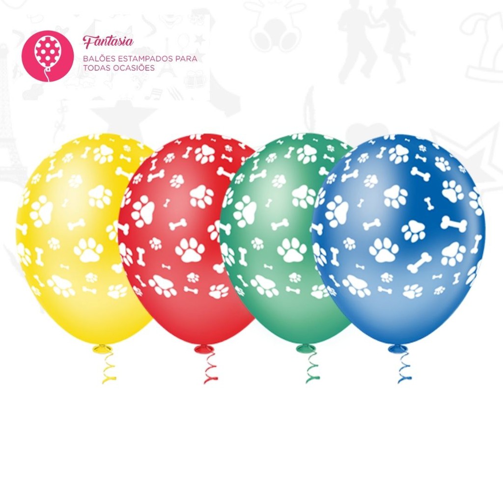 25 Balões Patinha de Cachorro Ossinho Coloridos Pic Pic - Cores Sortidas Nº 10 patinhas