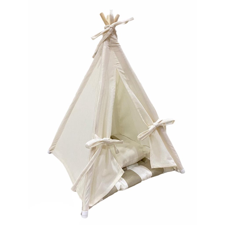 Cabana cama toca pet para cães e gatos cor cru com bege tam.P