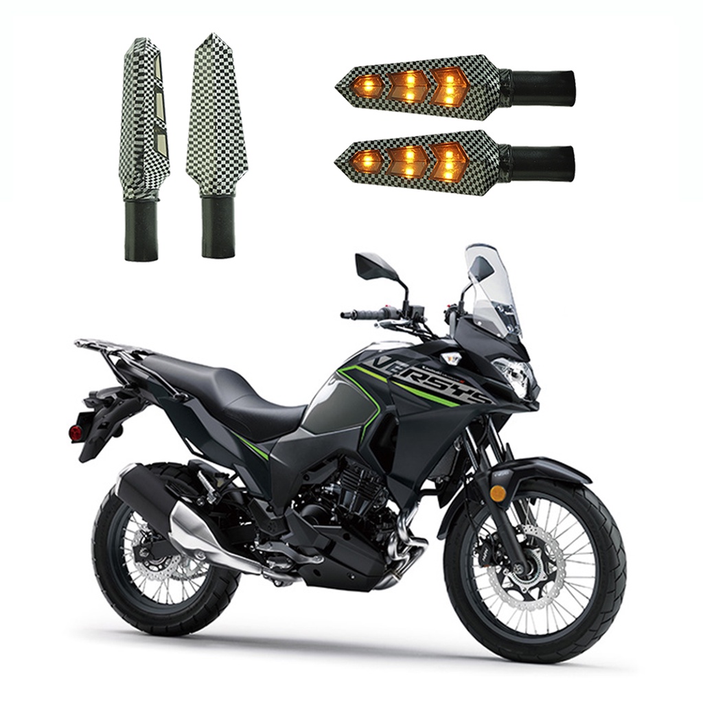 KIT 4 Luz Seta Esportiva Pisca Led de Carbono Modelo P03 Moto VERSYS 300 Ano 2016 2017 2018 2019 2020 2021
