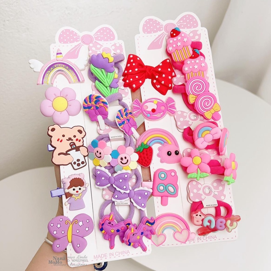Kit 14 Presilhas para Meninas como Elástico/Bico de Pato de cabelo/Xuxinha/Rabico