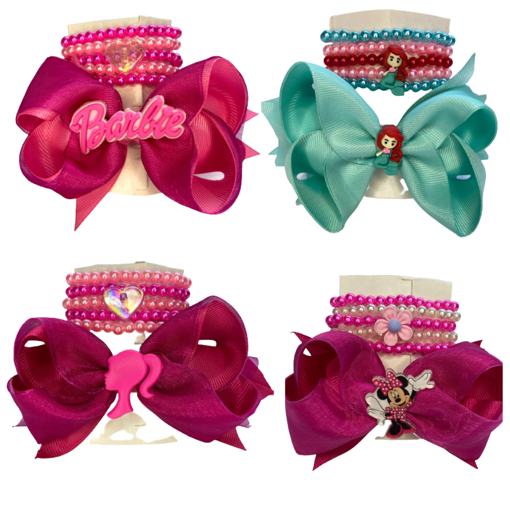 Kit Pulseira e Laço para Cabelo Tic Tac Infantil Miçanga Bico de Pato Rabicó Xuxinha