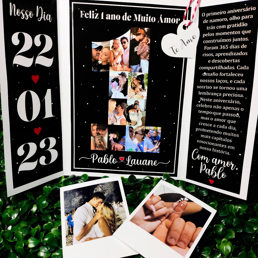 Carta Personalizada 1 ano de namoro +2 Fotos Retrô Tradicional 9x7