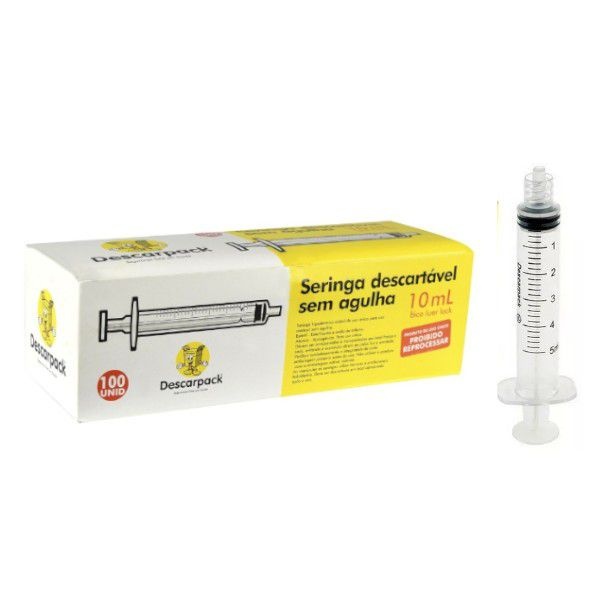 Seringa 10ml Luer Lock Sem Agulha 100 Unidades - Descarpack