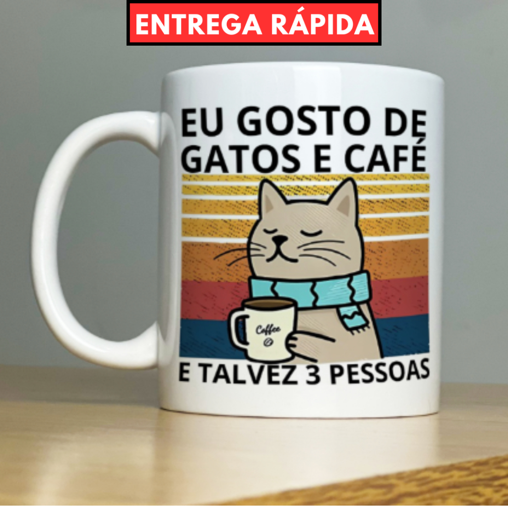 Caneca de cerâmica personalizada - 325ml - Gatos e Café