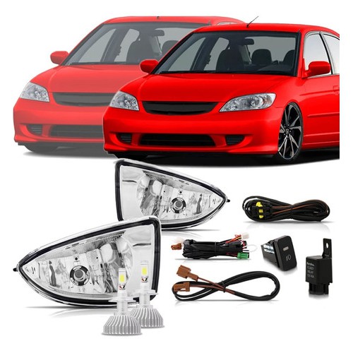 Kit Farol Neblina Civic 2004 2005 2006 Honda + Super Led 2d