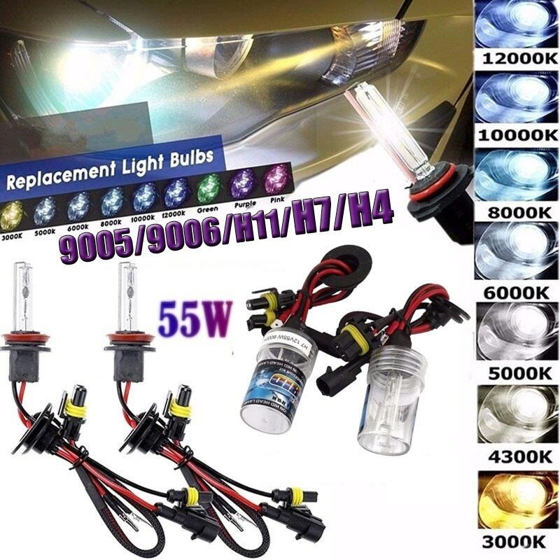 2pçs/Conjunto 55W HID Xenon Luzes DC 12V H1 H3 H7 H11 9005 9006 Lâmpadas De Conversão Automática H4 Hi-Low Beam 4300k 500k 600k 800k 1000k 1200k 3000k 3000k