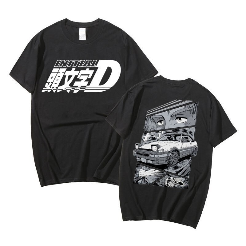 Camiseta Anime Japonês AE86 Inicial D Dupla Face Gola Redonda Manga Curta Verão Casual Unissex R34 Skyline GTR JDM