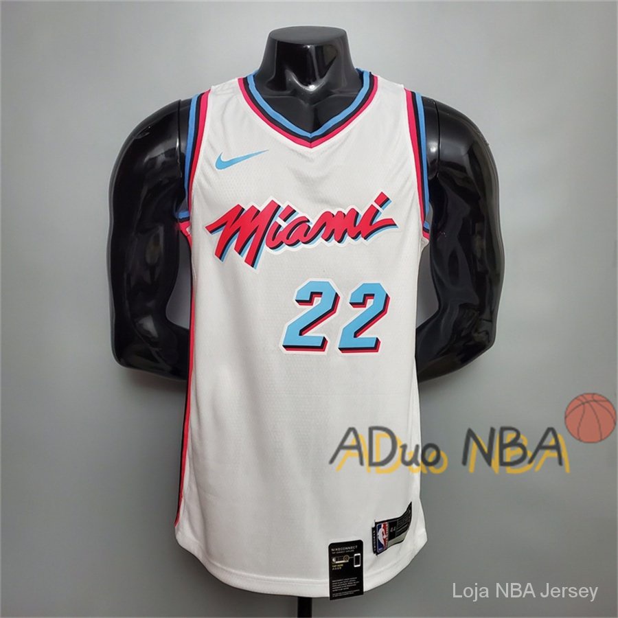 Hot pressed camiseta Miami Heat Camiseta #22 Jimmy Butler white city edition Sponsorship logo De Basquetebol nba Jersey