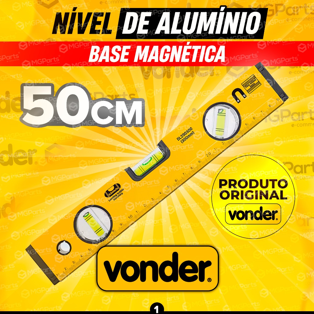 Nível de Alumínio Magnético 50cm Vonder Plus Profissional 3 Bolhas Régua Prumo Obras Construção