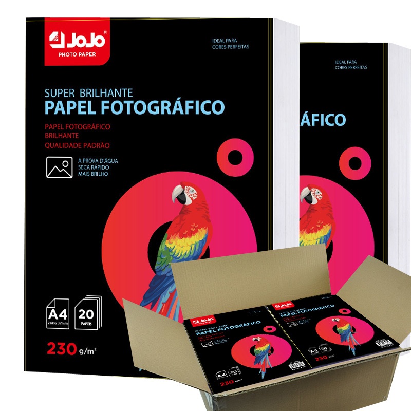 Papel Fotográfico A4 Glossy 230g Premium Brilho JOJO 80 Folhas