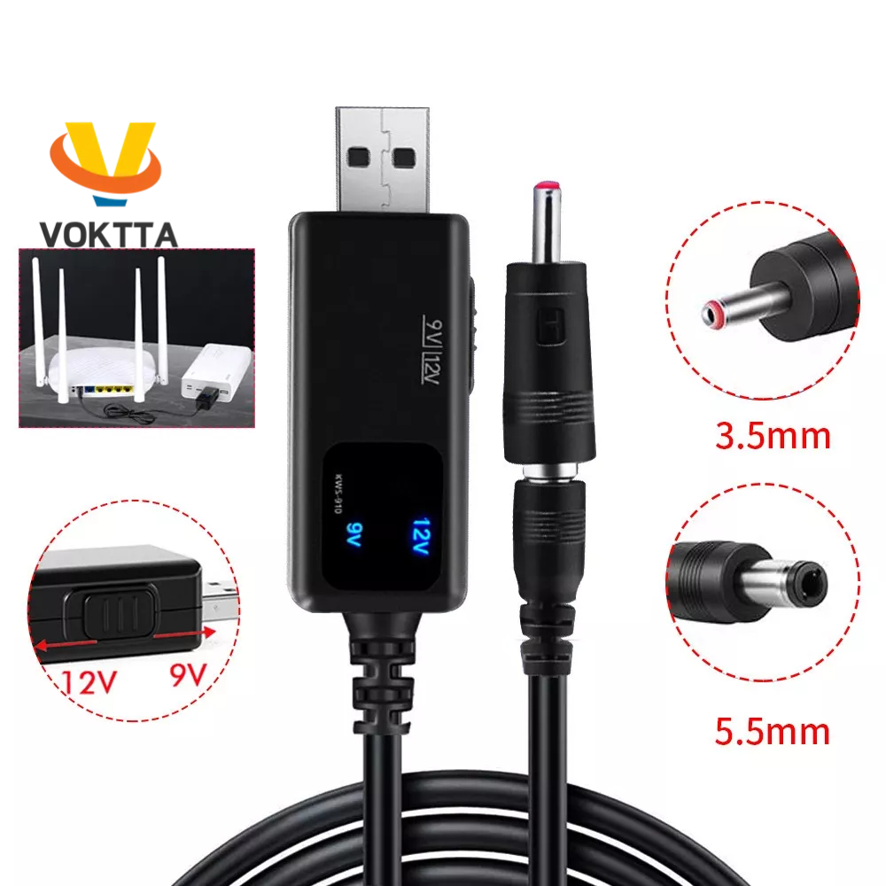 VOKTTA Conversor USB Boost Step-up Cabo DC 5V A 9V Conector De 12V Para Carregador De Alimentação De Energia