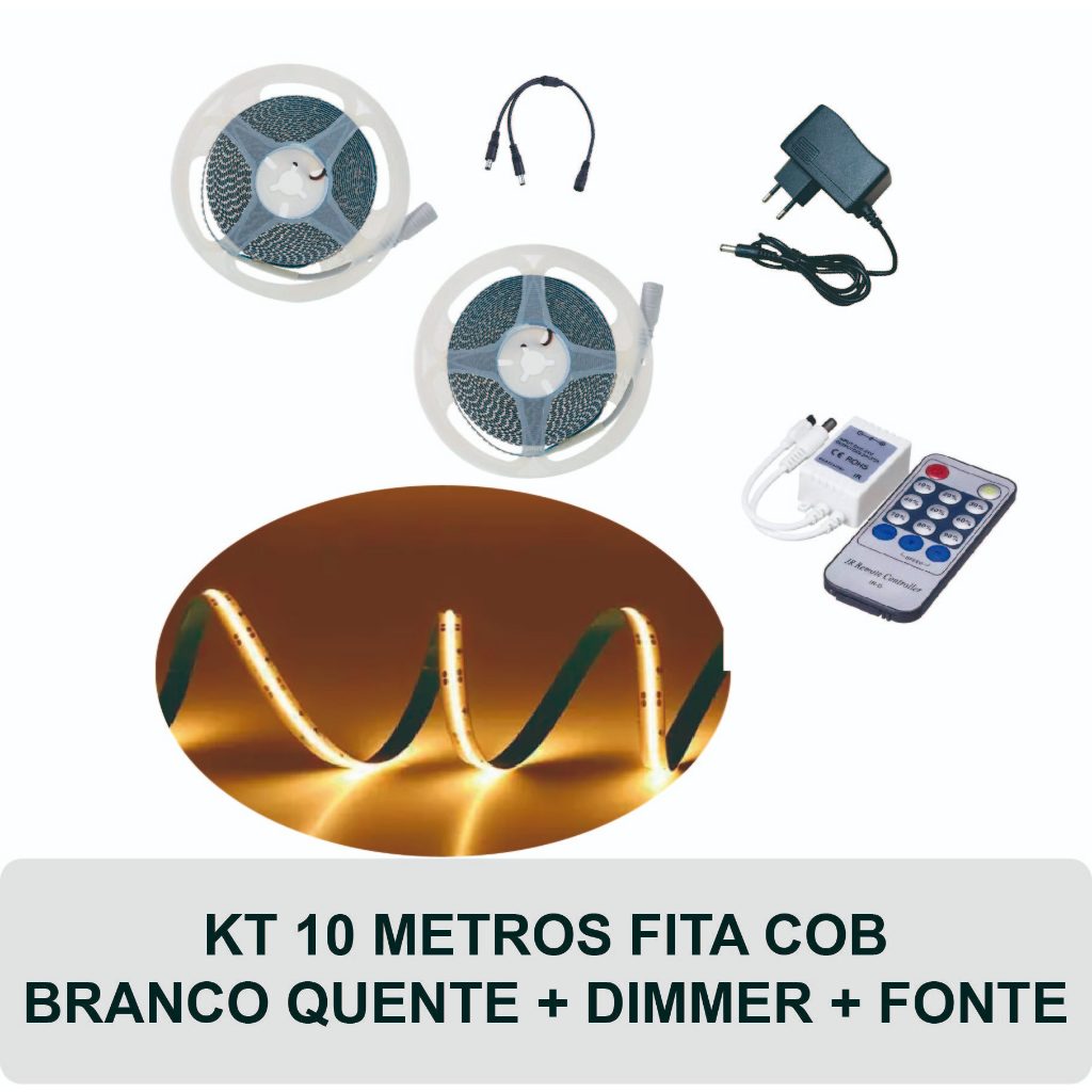 KIT Fita Led COB Branco Quente 5 10 20 metros C/DIMMER 2835 +Fonte 360 Leds/m Quarto DECORAÇÃO SANCA