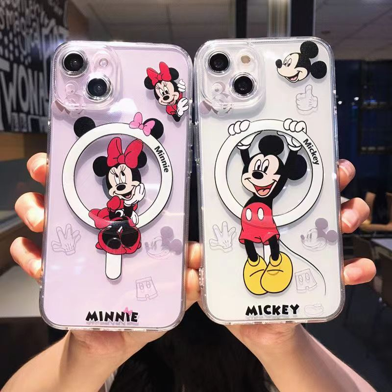 Mickey Minnie Transparente TPU Capa Magnética celular Capinha Capa Para iPhone 15 14 13 12 11 Pro Max À Prova De Choque