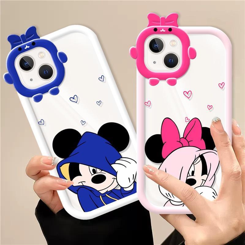 Capa De Cartoon Fofo Casal Mickey Minnie Para Celular IPhone 15 14 Pro Max 11 13 12 Caixa De Telefone 3D Bow-knot Little Monster Lens Traseira Macia E Transparente TPU