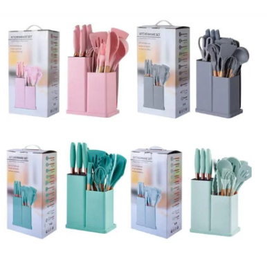 Kit 19 Peças Jogo de Utensílios de Cozinha em Silicone Completo Antiaderente e Resistente ao calor