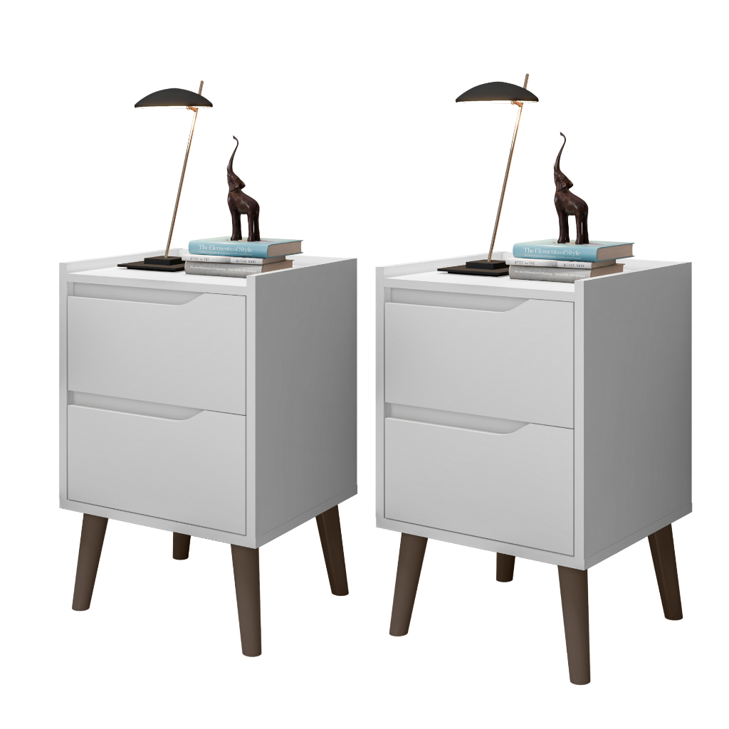 Kit 2 Mesas de Cabeceira 2 Gavetas Gabriela Quarto Pés Retro Apoio