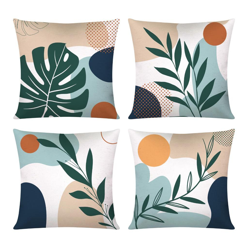 Kit c/ 4 Capas de Almofada Decorativas Modern Print 45x45 - Folhagem Abstrata