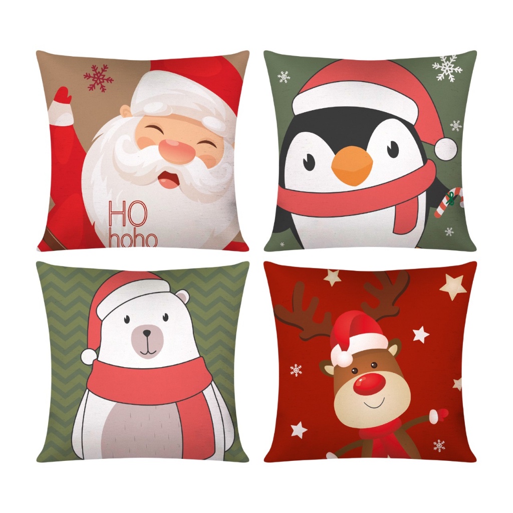 Kit c/ 4 Capas de Almofada Decorativas Modern Print Natal - Natal Pinguim