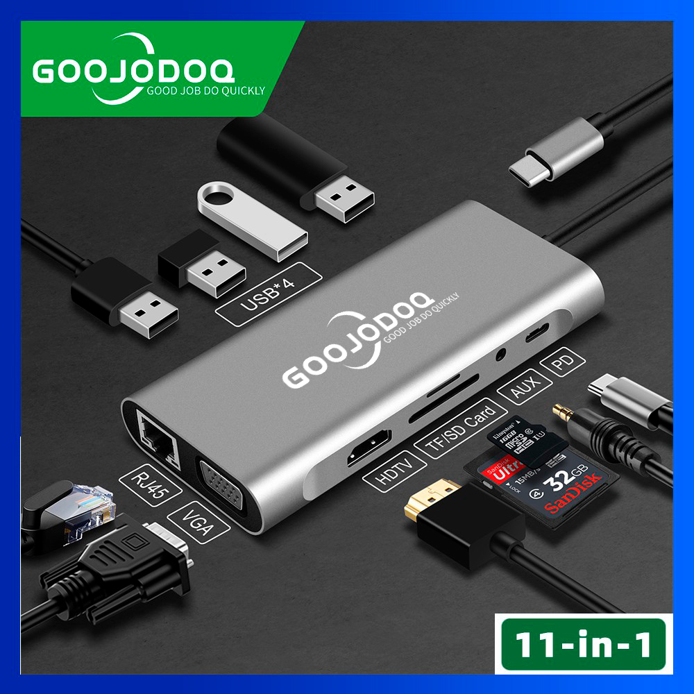 [Escolha De Valor] GOOJODOQ Adaptador De hub USB C Laptop Type 11 Em 1 RJ 45 Conector Porta De Exibição De Cabo VGA Para
