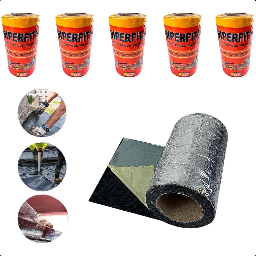Kit 5 Manta Asfáltica Fita Adesiva Autoadesiva Impermeabilizada Reparo Telhado Rufo Calha 20cm X 10m