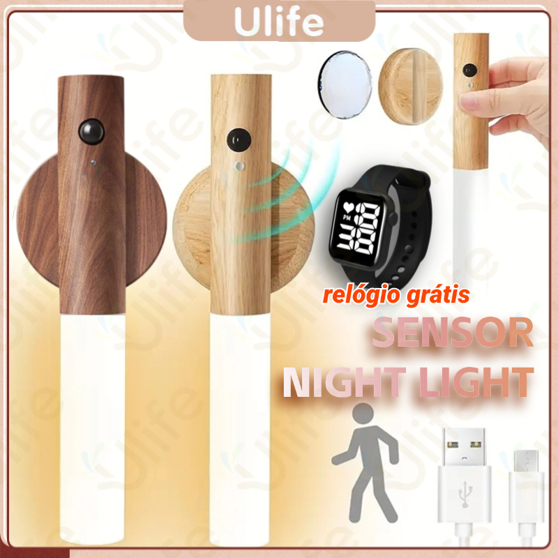 Luz De Presença Automática LED Noturna Magnética De Madeira Sensor De Movimento Inteligente Multifuncional USB Recarregá