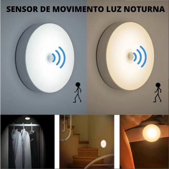 Luminaria Sensor De Presença e Movimento Led Luz Noturna Inteligente Sem Fio Recarregável Usb