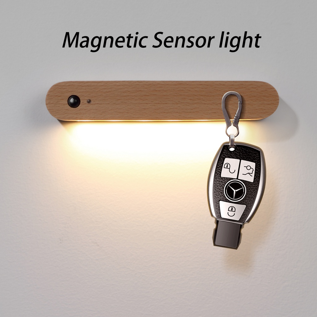 Luz De Parede Com sensor De Movimento LED , De Madeira , Noturna Recarregável USB , Lâmpada Magnética Cabeceira Armário Entrada