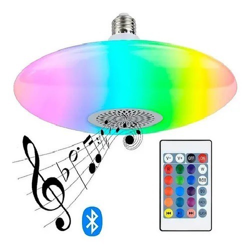 Lampada Bulbo Ufo Light Led 30w RGB Caixa De Som Bluetooth Controle Remoto