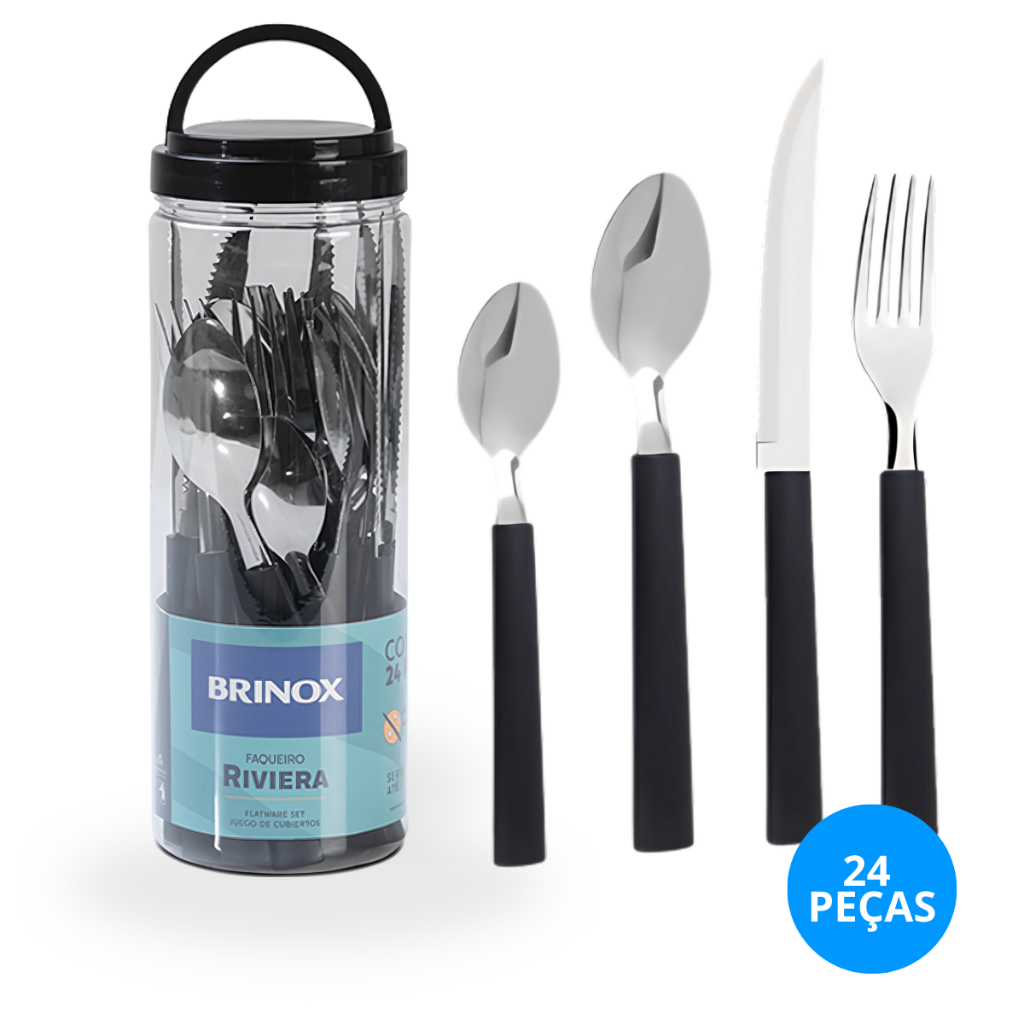 Faqueiro Brinox Preto Jogo De Talheres Aço Inox 24 Peças Com Pote Plástico