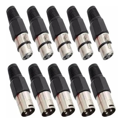 Kit 5 Plug Macho 5 Plug Femea Conector Xlr Canon Preto Profissional