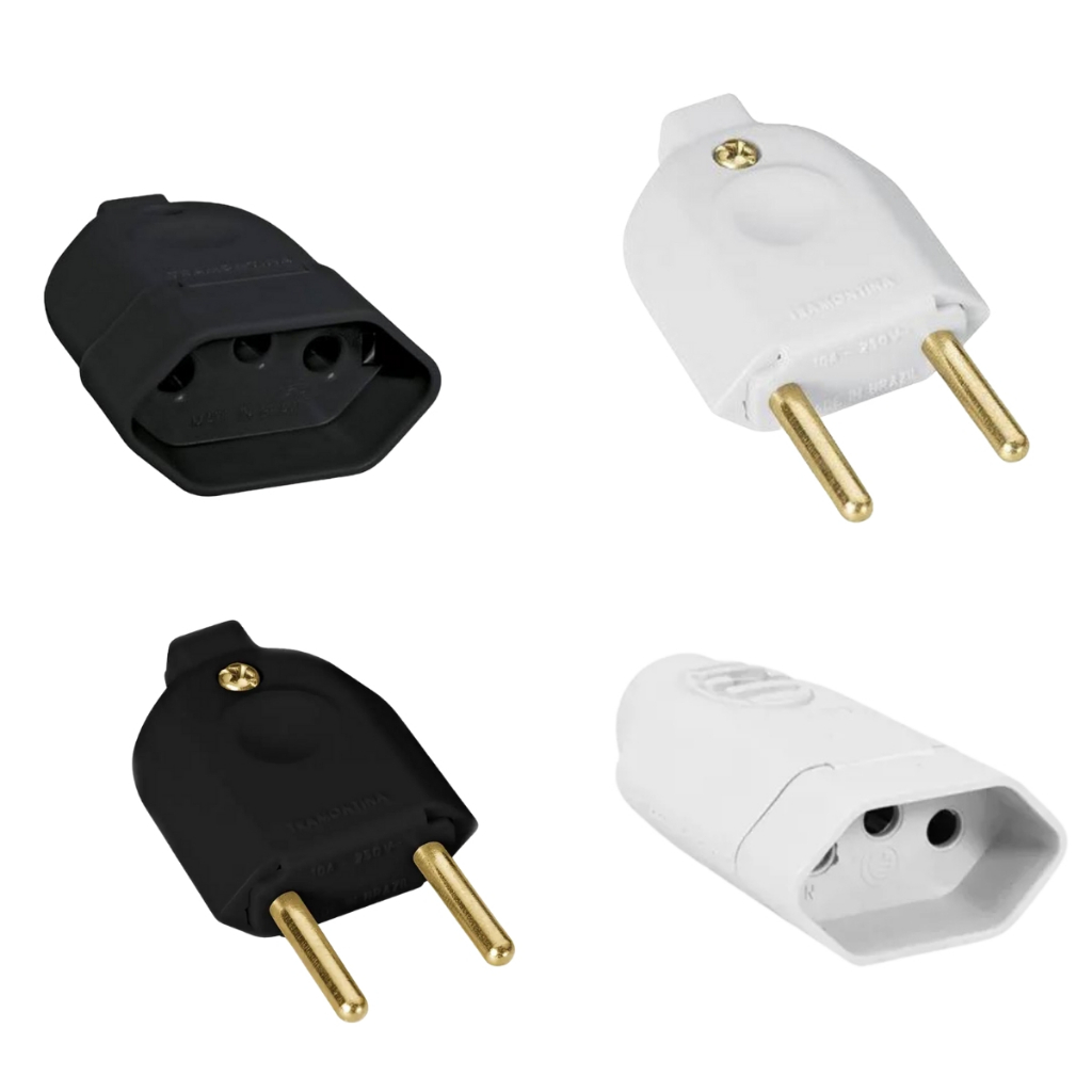 Kit 10 Plug Macho 10A 2 Polos + 10 Plug Fêmea 10A Tomada 2P+T