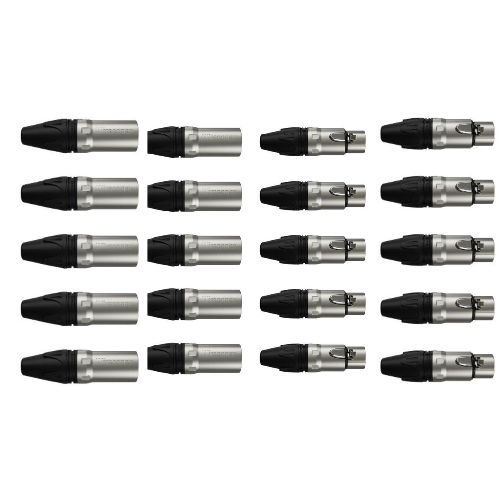 Kit 10 Conectores Xlr 5 Plug Macho + 5 Plug Fêmea 3 Polos Wireconex WC-1013 WC-1003