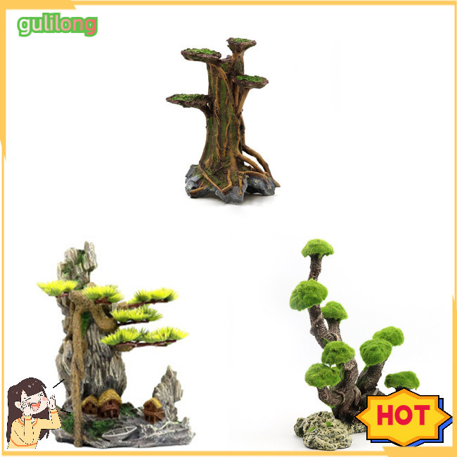 GULI Aquário Decoração Vista Da Árvore Montanha Ornamentos Em Pedra Betta Caverna Paisagem Cepo Tronco Casa Oca
