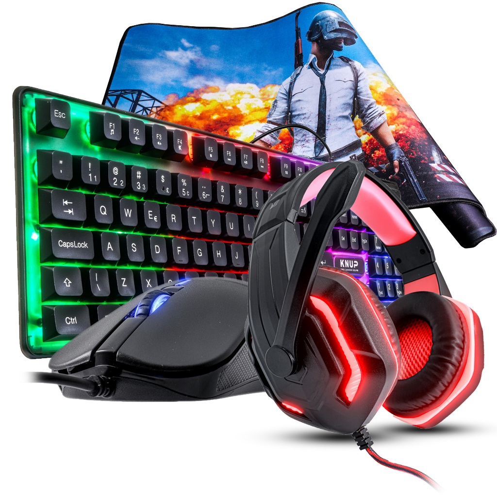 Kit Teclado E Mouse Fone Gamer Headset Mousepad Com Luzes RGB Conexão USB Completo Jogos Pc Notebook