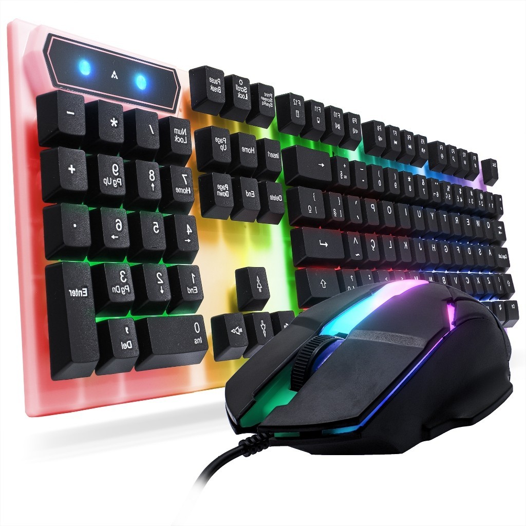 Kit Teclado e Mouse Gamer LED RGB Multimidia USB Teclas Gravadas a Laser Resolução 1600DPI Computador Note