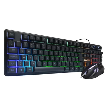 Kit Teclado E Mouse Gamer Iluminação LED RGB Membrana Conexão Usb