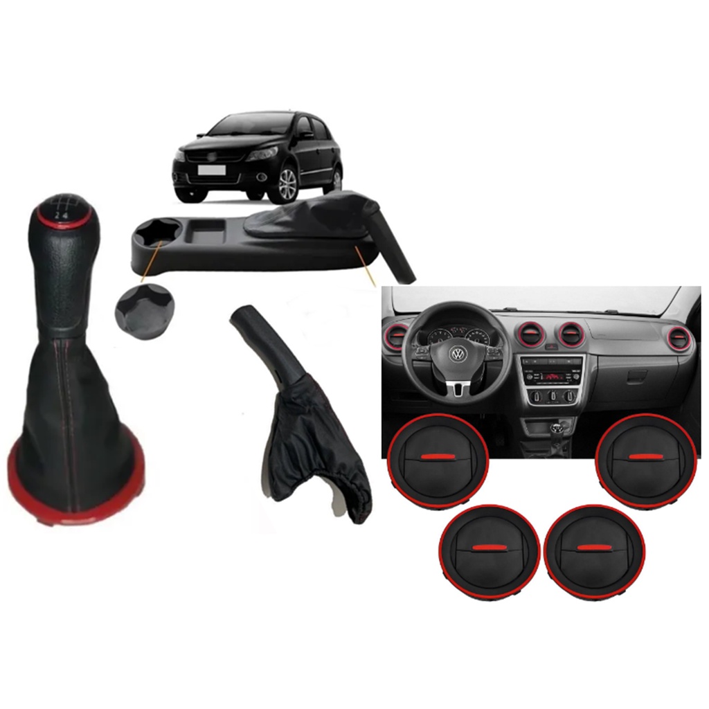 Kit Prolongador Console Coifa com ou sem 4 Difusor Ar Gol G5 G6 c/ aro e costura Vermelho